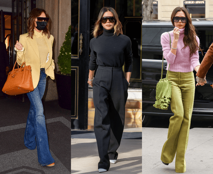 У каждой звезды есть свой беспроигрышный аутфит, и у Виктории это идеальный брючный костюм, который она носит регулярно. Серый, синий, черный — каждый сидит на ней так, будто был сшит на заказ, и работает как универсальный язык: в нем можно поехать в офис четы Бэкхемов, на показ собственного бренда и на ужин с любимой семьей.