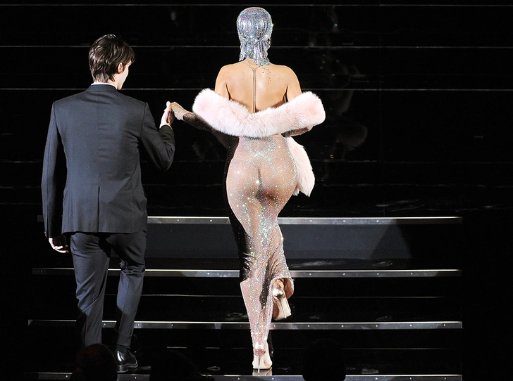 Много прозрачной ткани, капельку кристаллов в стратегически важных местах, харизма и вуаля — идеальный наряд для Бейонсе готов. Правда, если вы не Бейонсе, ну, или хотя бы не обладаете такой же смелостью, повторять подобный выход не стоит. Даже если речь идет о Givenchy Couture. К слову, это было не единственное голое платье на том вечере: компанию певице составили Джей Ло и Ким Кардашьян. Но наряд Бейонсе — наш фаворит.