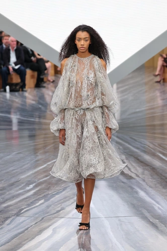 Сегодня внимание смещается к ткани и ее поведению: как она ложится, как двигается, как реагирует на тело. Драпировки, струящиеся материалы, шелк — все, что раньше считалось слишком мягким и инфантильным, теперь становится центральным элементом.
