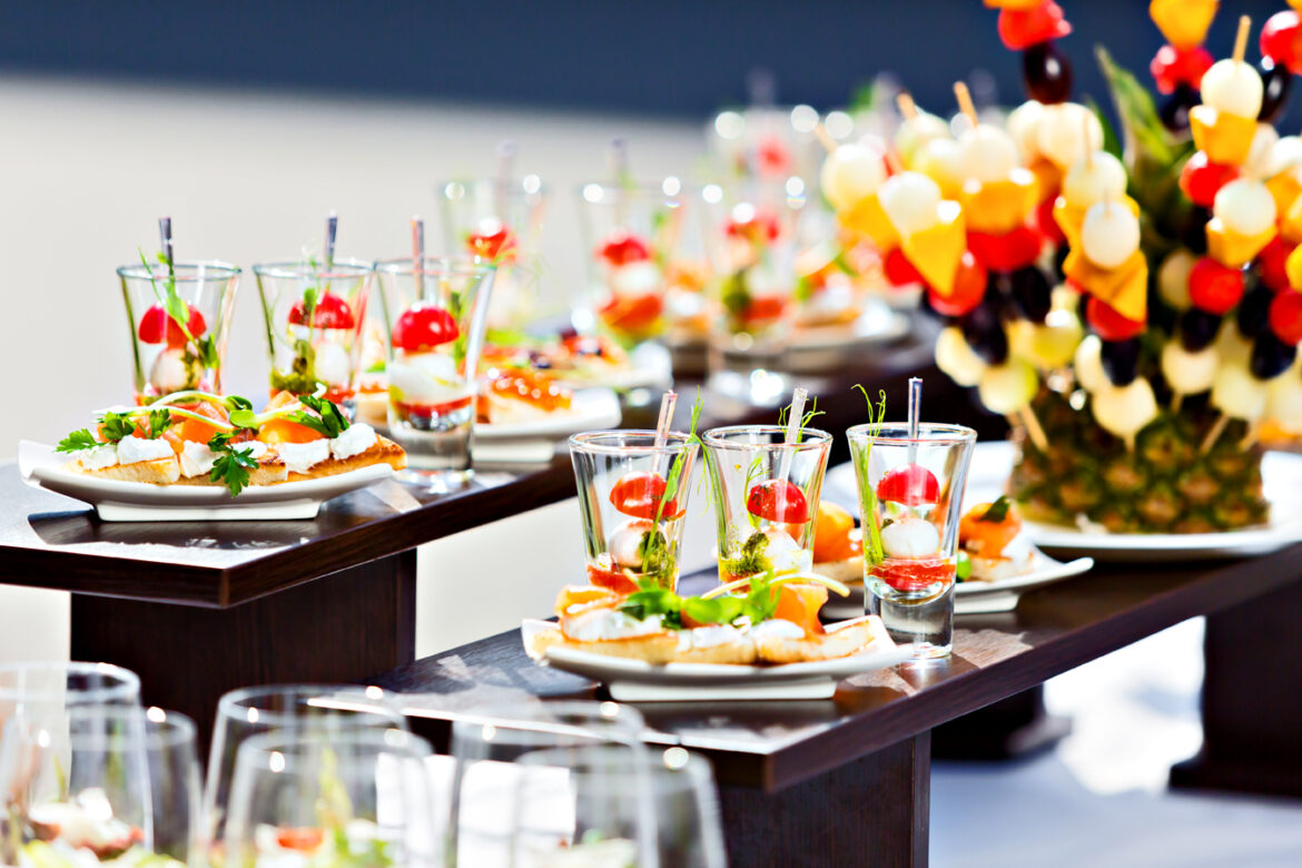 В целом, современное фуршетное меню характеризуется гибкостью и огромным количеством разнообразных блюд. На данный момент особой популярностью пользуются блюда восточной кухни, в связи с чем в меню нередко добавляют компактные роллы и суши. Если говорить о напитках, то они должны сочетаться с присутствующей закуской в обязательном порядке. Чаще всего ставят минеральную воду, соки, морсы и алкоголь.